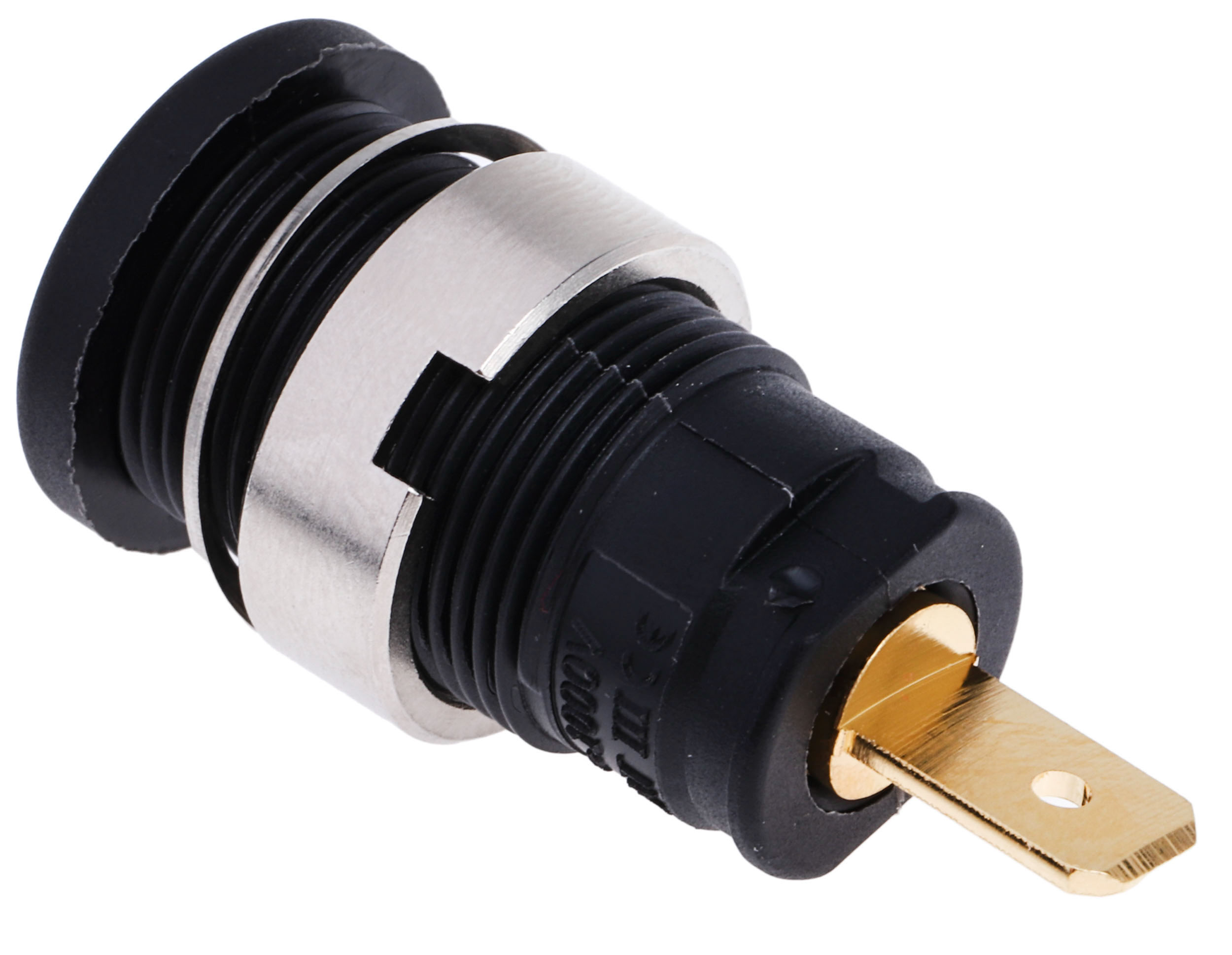 This is Black 4mm Socket Gold Plated 1000V ac/dc 25A manufactured by Hirschmann Test & Measurement. The manufacturer part number is 972355100. The product has a current rating of 25a. Moreover, the product has a nominal 1000v ac/dc voltage rating. In addition, female is the available "Gender" of the product. It has a decent black colour. Its accurate length is 32mm. The high-quality gold is used as contact plating material. It allows tab termination method. It has a robust polyamide insulation material. It comes in banana socket configuration. The connector has 4 mm size. The product is made from sturdy brass materials.