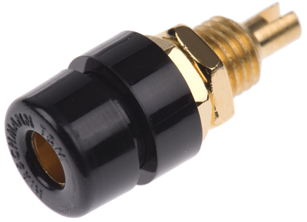 This is Black 4mm Socket Gold Plated 30 V ac 60 V dc 32A manufactured by Hirschmann Test & Measurement. The manufacturer part number is 930166700. The product has a current rating of 32a. Moreover, the product has a nominal 30 v ac, 60v dc voltage rating. In addition, female is the available "Gender" of the product. It has a decent black colour. Its accurate length is 23.5mm. The high-quality gold is used as contact plating material. It allows solder termination method. It has a robust polyamide insulation material. It comes in banana socket configuration. The connector has 4 mm size. The product is made from sturdy brass materials.