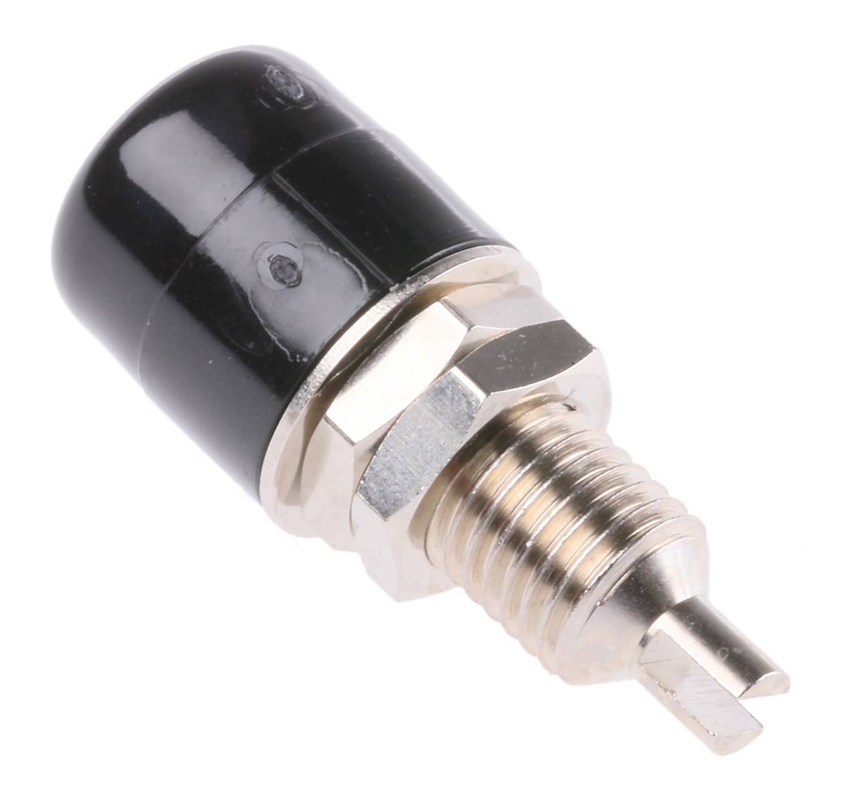 This is Black 4mm Socket Nickel Plated 30 V ac 60 V dc 32A manufactured by Schutzinger. The manufacturer part number is IBU401 BLK. The product has a current rating of 32a. Moreover, the product has a nominal 30 v ac, 60v dc voltage rating. In addition, female is the available "Gender" of the product. It has a decent black colour. Its accurate length is 23mm. It contains a spring contact . The high-quality nickel is used as contact plating material. It allows solder termination method. It has a robust nylon insulation material. It comes in banana socket configuration. The connector has 4 mm size. The product is made from sturdy brass materials.
