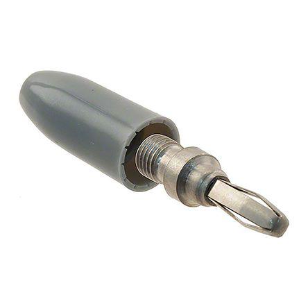 This is Grey Banana Plug 15A 1.75kV Nickel Plated manufactured by Cinch Connectors. The manufacturer part number is 108-0313-001. The product has a current rating of 15a. Moreover, the product has a nominal 1750v voltage rating. In addition, male is the available "Gender" of the product. It has a decent grey colour. Its accurate length is 37.69mm. It contains a spring contact . The high-quality nickel is used as contact plating material. It allows solder termination method. It has a robust nylon insulation material. It comes in banana plug configuration. The product is made from sturdy brass materials.