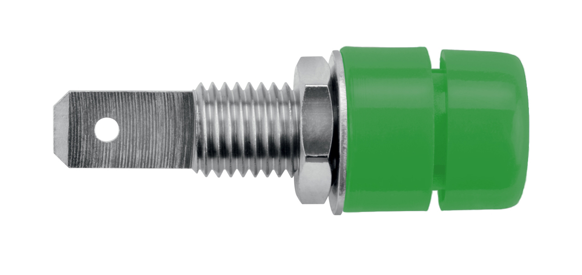 This is manufactured by Schutzinger. The manufacturer part number is IBU 5568 / GN. The product has a current rating of 32a. In addition, female is the available "Gender" of the product. It has a decent green colour. The high-quality nickel is used as contact plating material. It comes in test connector configuration. The connector has 4 mm size.