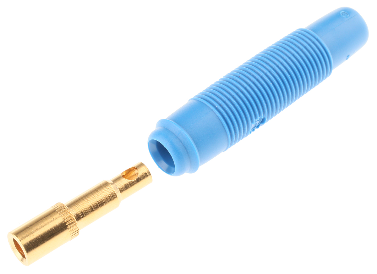 This is Blue 4mm Socket Gold Plated 30 V ac 60 V dc 16A manufactured by Hirschmann Test & Measurement. The manufacturer part number is 931804702. The product has a current rating of 16a. Moreover, the product has a nominal 30 v ac, 60v dc voltage rating. In addition, female is the available "Gender" of the product. It has a decent blue colour. Its accurate length is 48mm. It has a robust pvc-p insulation material. The high-quality gold is used as contact plating material. It allows solder termination method. It comes in banana socket configuration. The connector has 4 mm size. The product is made from sturdy brass materials.