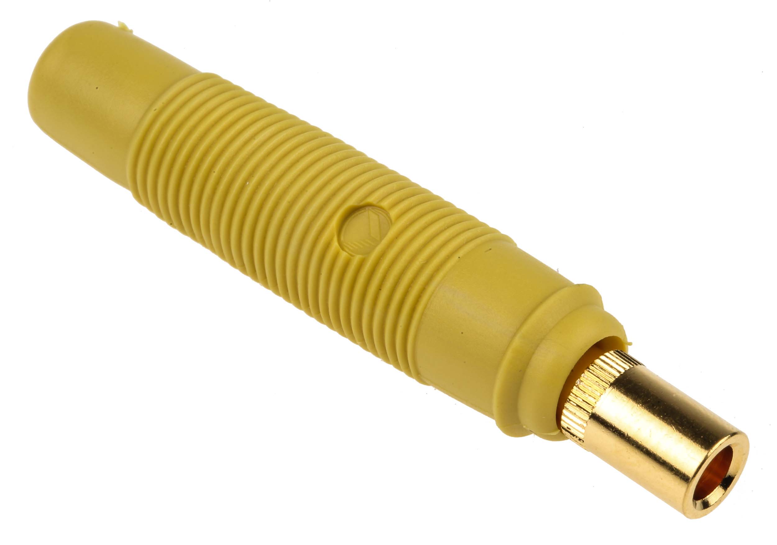This is Yellow 4mm Socket Gold Plated 30 V ac 60 V dc 16A manufactured by Hirschmann Test & Measurement. The manufacturer part number is 931804703. The product has a current rating of 16a. Moreover, the product has a nominal 30 v ac, 60v dc voltage rating. In addition, female is the available "Gender" of the product. It has a decent yellow colour. Its accurate length is 48mm. It has a robust pvc-p insulation material. The high-quality gold is used as contact plating material. It allows solder termination method. It comes in banana socket configuration. The connector has 4 mm size. The product is made from sturdy brass materials.