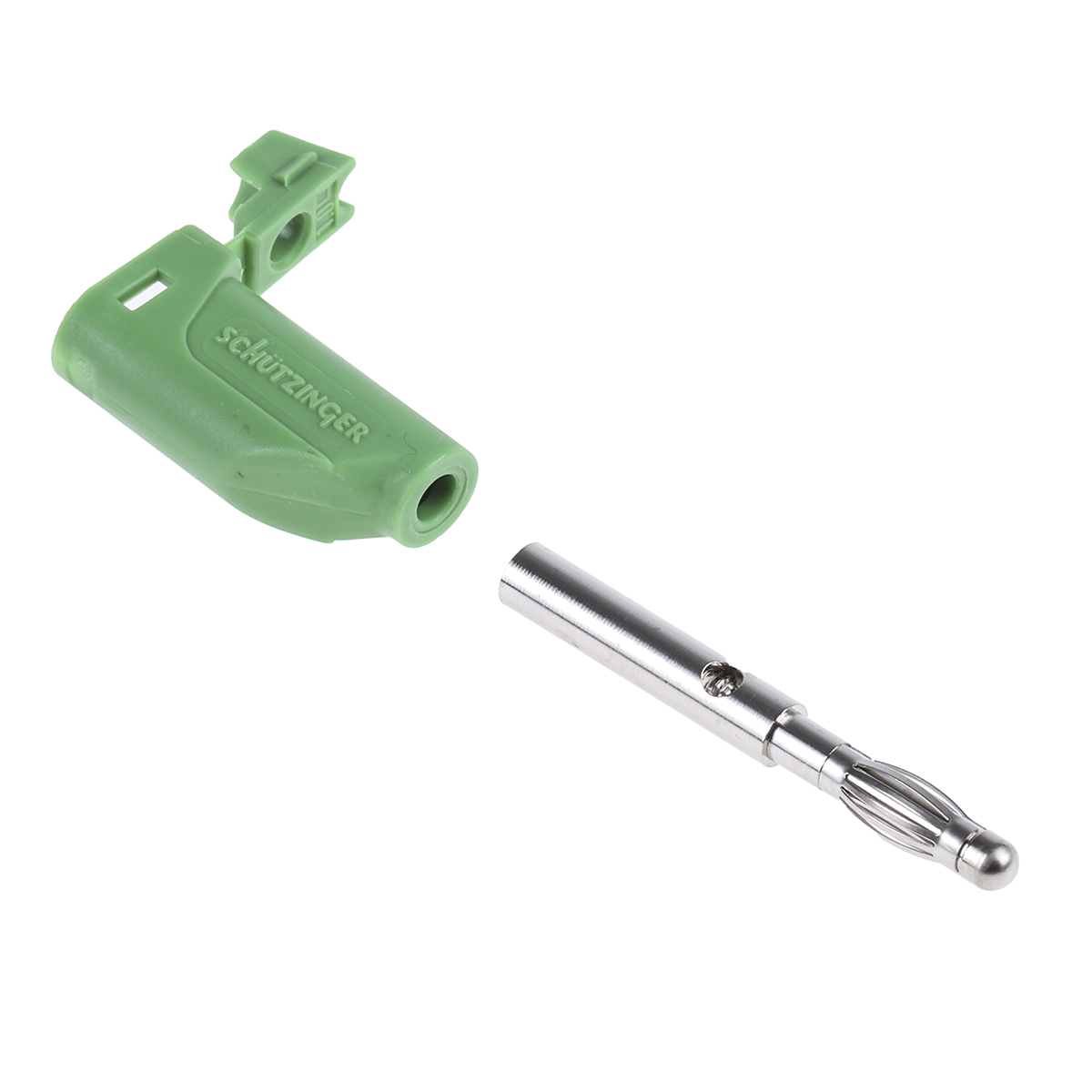This is Green 4mm Stackable Banana Plug Nickel Plated 30 V ac 60 V dc 16A manufactured by Schutzinger. The manufacturer part number is FK15S GREEN. The product has a current rating of 16a. Moreover, the product has a nominal 30 v ac, 60v dc voltage rating. In addition, male is the available "Gender" of the product. It has a decent green colour. Its accurate length is 44mm. The high-quality nickel is used as contact plating material. It allows screw termination method. It has a robust pe insulation material. The product is made from sturdy brass materials. It comes in banana plug configuration. The connector has 4 mm size. It contains a spring contact .