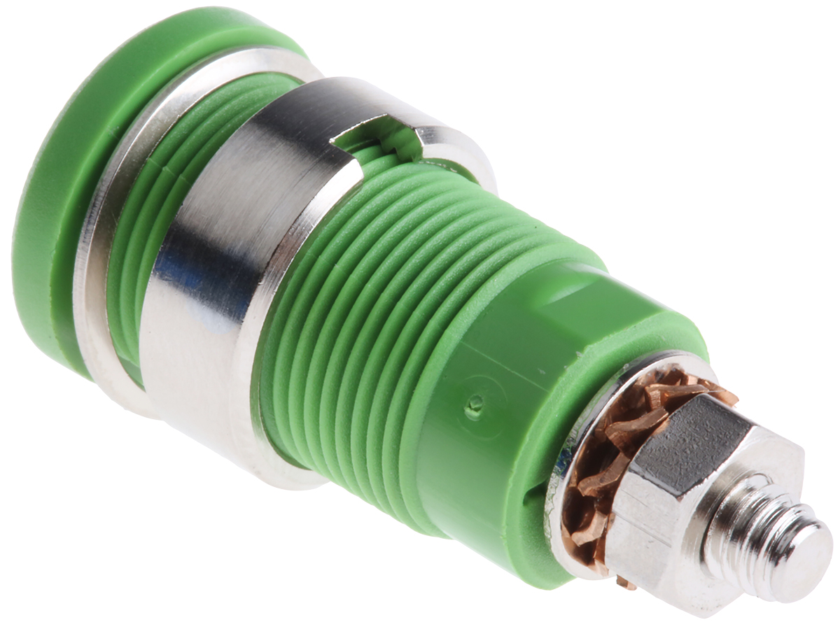 This is Green 4mm Socket Nickel Plated 1kV 32A manufactured by Schutzinger. The manufacturer part number is SEB 6445 NI / GN. The product has a current rating of 32a. Moreover, the product has a nominal 1000v voltage rating. In addition, female is the available "Gender" of the product. It has a decent green colour. Its accurate length is 31.8mm. It contains a spring contact . The high-quality nickel is used as contact plating material. It allows screw termination method. It has a robust polyamide insulation material. It comes in banana socket configuration. The connector has 4 mm size.
