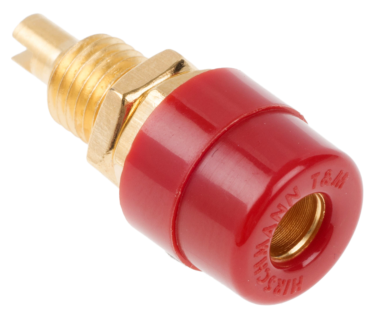 This is Red 4mm Socket Gold Plated 30 V ac 60 V dc 32A manufactured by Hirschmann Test & Measurement. The manufacturer part number is 930176701. The product has a current rating of 32a. Moreover, the product has a nominal 30 v ac, 60v dc voltage rating. In addition, female is the available "Gender" of the product. It has a decent red colour. Its accurate length is 23.5mm. It has a robust polyamide insulation material. The high-quality gold is used as contact plating material. It allows solder termination method. It comes in banana socket configuration. The connector has 4 mm size. The product is made from sturdy brass materials.