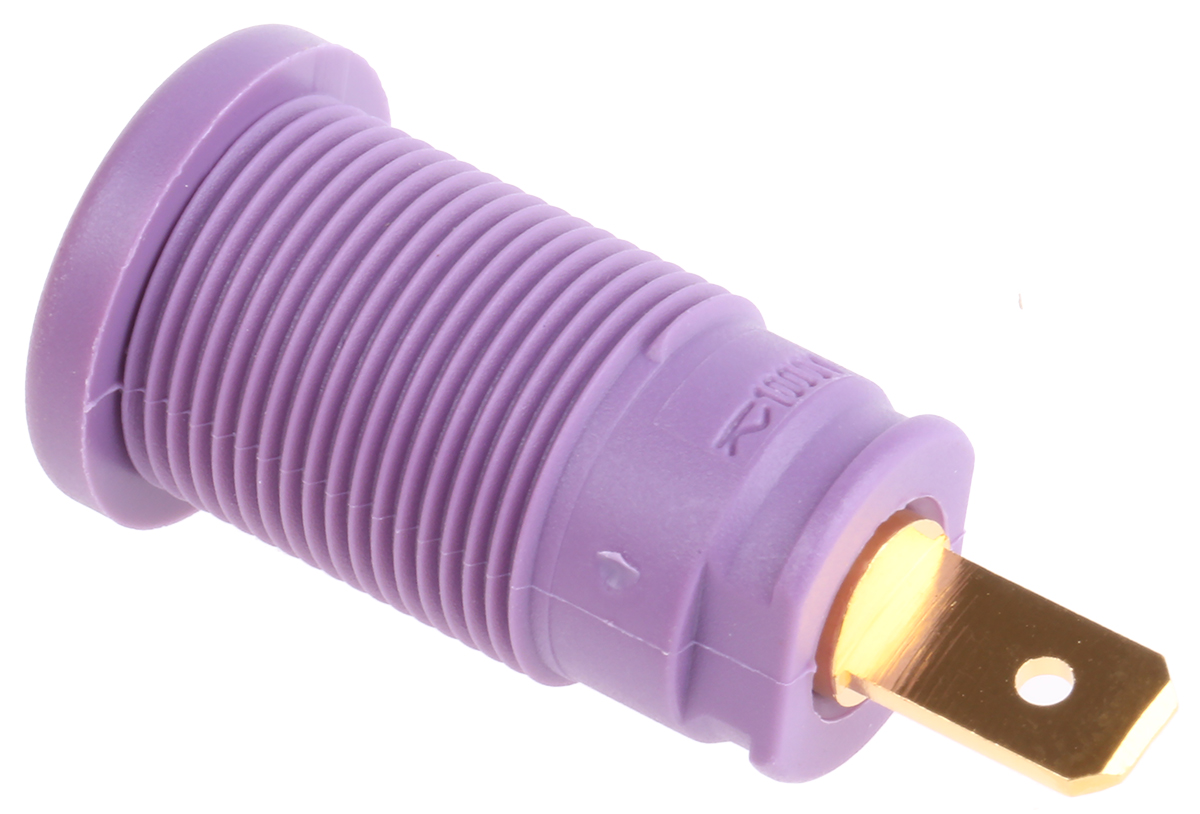 This is Violet 4mm Socket Gold Plated 1000V ac/dc 25A manufactured by Hirschmann Test & Measurement. The manufacturer part number is 972355109. The product has a current rating of 25a. Moreover, the product has a nominal 1000v ac/dc voltage rating. In addition, female is the available "Gender" of the product. It has a decent violet colour. Its accurate length is 32mm. The high-quality gold is used as contact plating material. It allows tab termination method. It has a robust polyamide insulation material. It comes in banana socket configuration. The connector has 4 mm size. The product is made from sturdy brass materials.