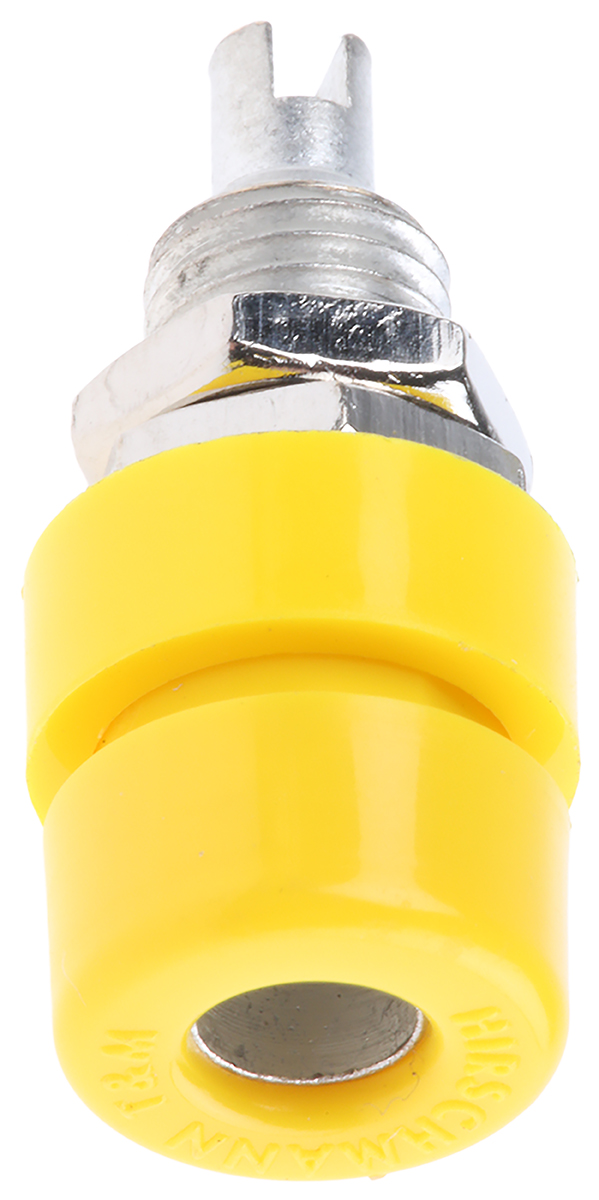 This is Yellow 4mm Socket Tin Plated 30 V ac 60 V dc 32A manufactured by Hirschmann Test & Measurement. The manufacturer part number is 930166103. The product has a current rating of 32a. Moreover, the product has a nominal 30 v ac, 60v dc voltage rating. In addition, female is the available "Gender" of the product. It has a decent yellow colour. Its accurate length is 23.5mm. It has a robust polyamide insulation material. The high-quality tin is used as contact plating material. It allows solder termination method. It comes in banana socket configuration. The connector has 4 mm size. The product is made from sturdy brass materials.