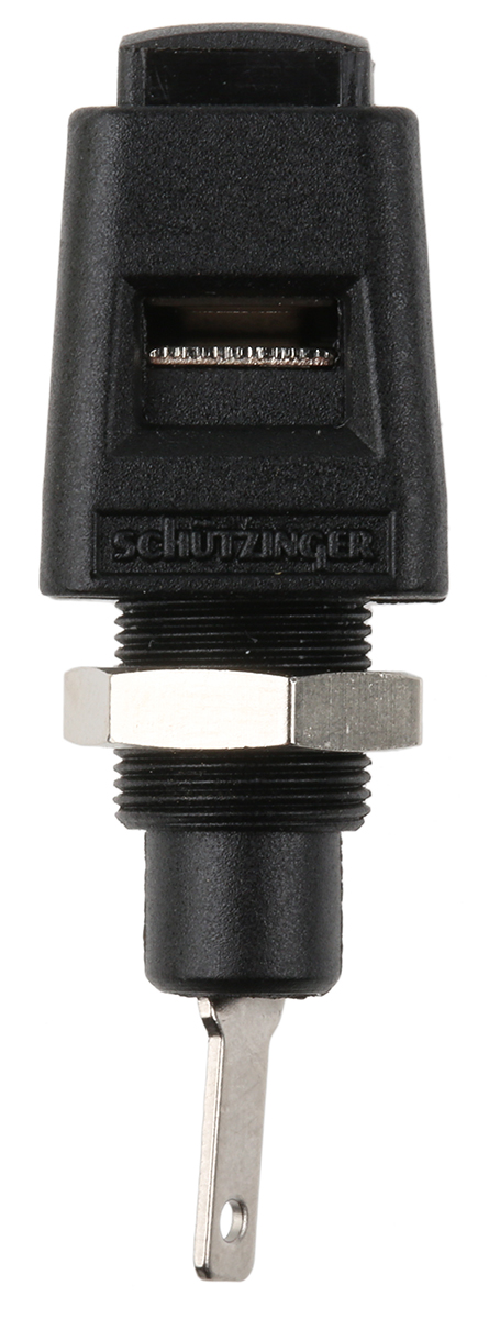 This is Black 4 mm Test Plug & Socket Nickel Plated 33 V ac 70 V dc 5A manufactured by Schutzinger. The manufacturer part number is ESD 6554 / SW. It has a decent black colour. The product has a current rating of 5a.