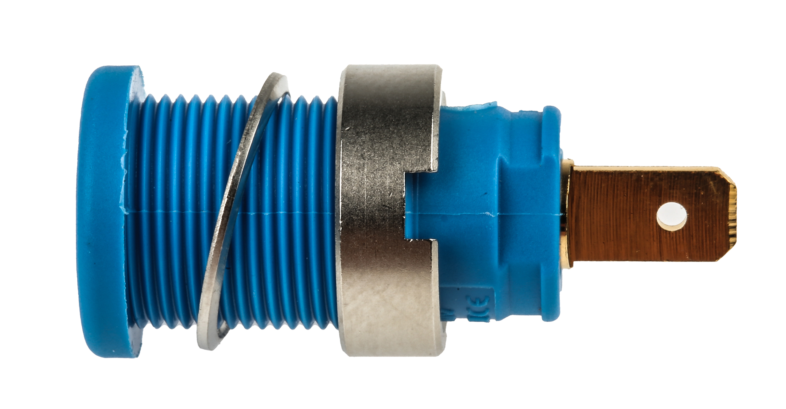 This is Blue 4mm Socket Gold Plated 1000V ac/dc 25A manufactured by Hirschmann Test & Measurement. The manufacturer part number is 972355102. The product has a current rating of 25a. Moreover, the product has a nominal 1000v ac/dc voltage rating. In addition, female is the available "Gender" of the product. It has a decent blue colour. Its accurate length is 32mm. The high-quality gold is used as contact plating material. It allows tab termination method. It has a robust polyamide insulation material. It comes in banana socket configuration. The connector has 4 mm size. The product is made from sturdy brass materials.