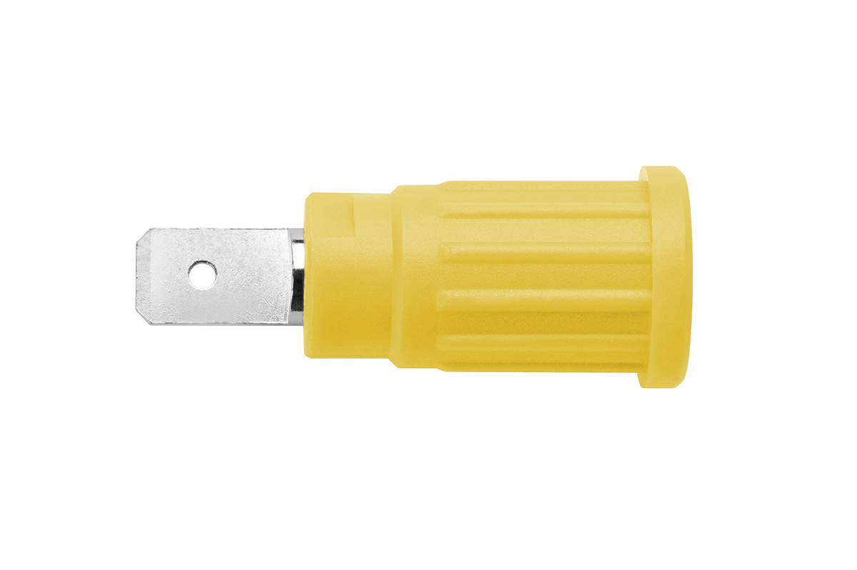 This is Safety press-in socket nickel-plated 1 manufactured by Schutzinger. The manufacturer part number is SEPB 6453 Ni / GE. The product has a current rating of 32a. Moreover, the product has a nominal 1000v voltage rating. In addition, female is the available "Gender" of the product. It has a decent yellow colour. Its accurate length is 34.8mm. The high-quality nickel is used as contact plating material. It allows pc pin termination method. It has a robust nylon insulation material. It comes in banana socket configuration. The connector has 4 mm size. The product is made from sturdy brass materials.