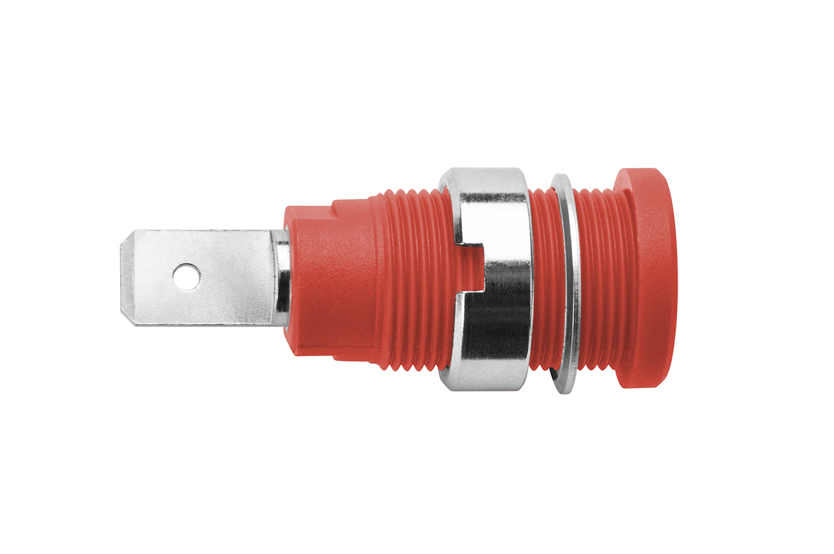 This is Safety threaded socket 1000 V CAT III manufactured by Schutzinger. The manufacturer part number is SEB 6452 Ni / RT / 2012. The connector has 4 mm size. In addition, female is the available "Gender" of the product. It has a decent red colour. banana socket Connector type offer robust functionality. Features a 10a current in A. Its accurate length is 35mm. It carries a 1000 v of voltage. The high-quality nickel is used as contact plating material. It has a robust nylon insulation material. banana socket is a versatile product designed to provide user-defined applications. The product is made from sturdy brass materials.