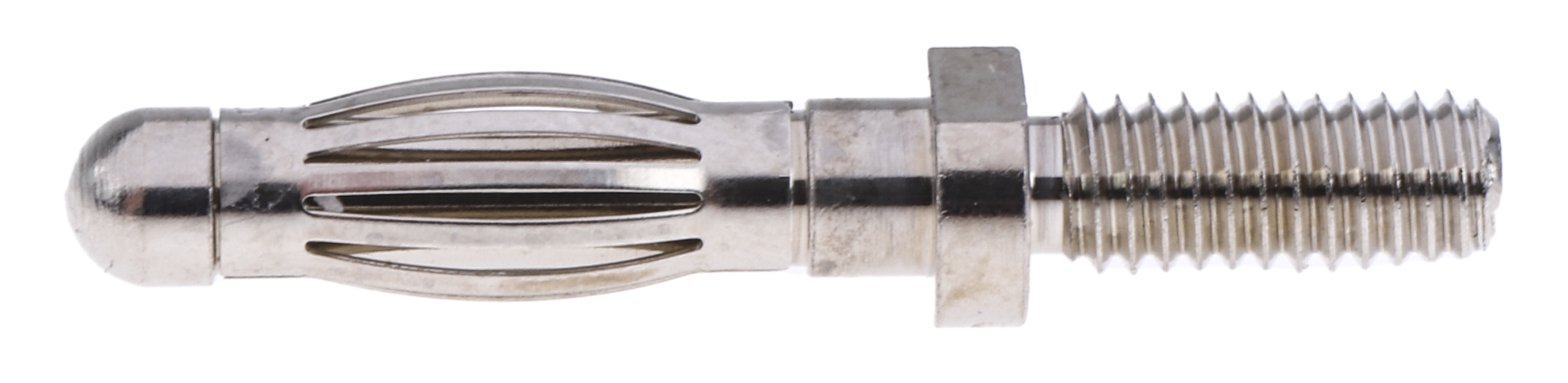 This is 2 mm Test Plug & Socket 32A 33 V ac 70 V dc Nickel Plated manufactured by Schutzinger. The manufacturer part number is FK 1210 Ni. The product has a current rating of 32a. Moreover, the product has a nominal 33 v ac, 70v dc voltage rating. In addition, male is the available "Gender" of the product. It has a decent silver colour. Its accurate length is 30mm. The high-quality nickel is used as contact plating material. It allows m4 thread termination method. It comes in banana plug configuration. The connector has 4 mm size. The product is made from sturdy beryllium copper materials.