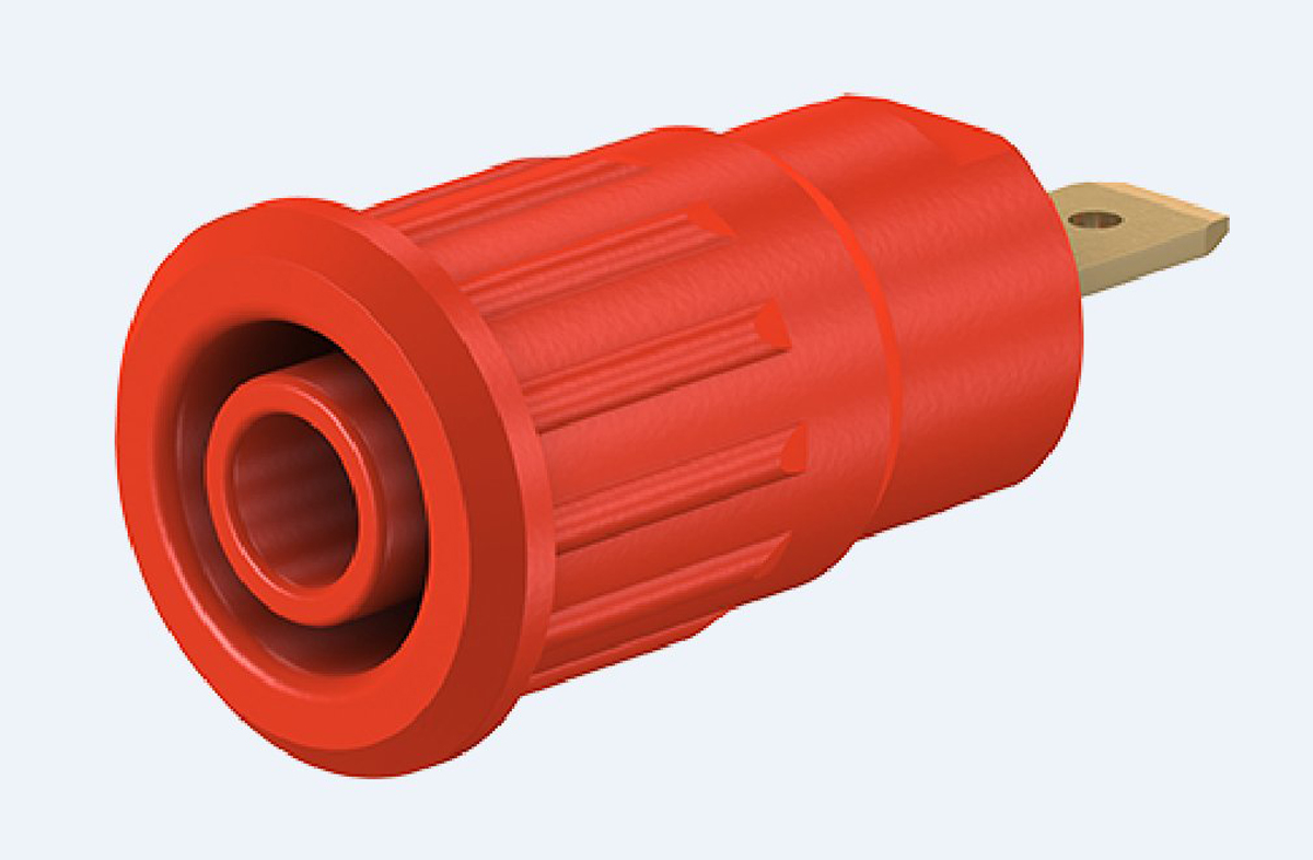 Staubli SEB4-F Series 4 mm Press-in Sockets SEB4-B series 4 mm press in sockets with rigid insulation for inserting into predrilled panels. These sockets have a 1000 V, CAT III / 24 A rating and are terminated with a 4.8 x 0.8 mm tab terminal. The sockets are made from machined brass and the insulation sleeves are colour coded for ease of identification. These SEB4-B series 4 mm press in sockets are designed to accept spring loaded 4 mm plugs which also have a rigid insulation sleeve. Features and Benefits Press-in fitting 1000 V, CAT III / 24 A rating Rigid, colour coded insulation 4.8 x 0.8 mm tab terminal