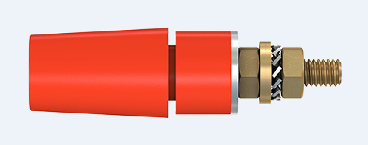 Staubli SAB4-G Series 4 mm Panel Sockets SAB4-G series 4 mm panel sockets with a rigid insulation sleeve for surface mounting into predrilled panels. These sockets have a 600 V, CAT II / 32 A rating and are made from machined brass. The sockets are terminated with an M4 threaded bolt and are designed to mate with spring loaded 4 mm diameter plugs which also have a rigid insulation sleeve. The insulation sleeves of these SAB4-G series 4 mm sockets are colour coded for ease of identification. Features and Benefits 600 V, CAT II / 32 A rating Rigid, colour coded insulation M4 connection bolt