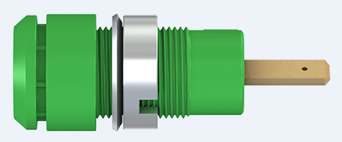 This is Multi Contact Green Female Banana Plug - Tab 600V manufactured by Staubli. The manufacturer part number is 65.9098-25. The product has a current rating of 10a. Moreover, the product has a nominal 600v voltage rating. In addition, female is the available "Gender" of the product. It has a decent green colour. Its accurate length is 28mm. The high-quality gold is used as contact plating material. It allows tab termination method. It has a robust polyamide insulation material. The product is made from sturdy brass materials. It comes in banana socket configuration. The connector has 2mm size. It contains a spring contact .