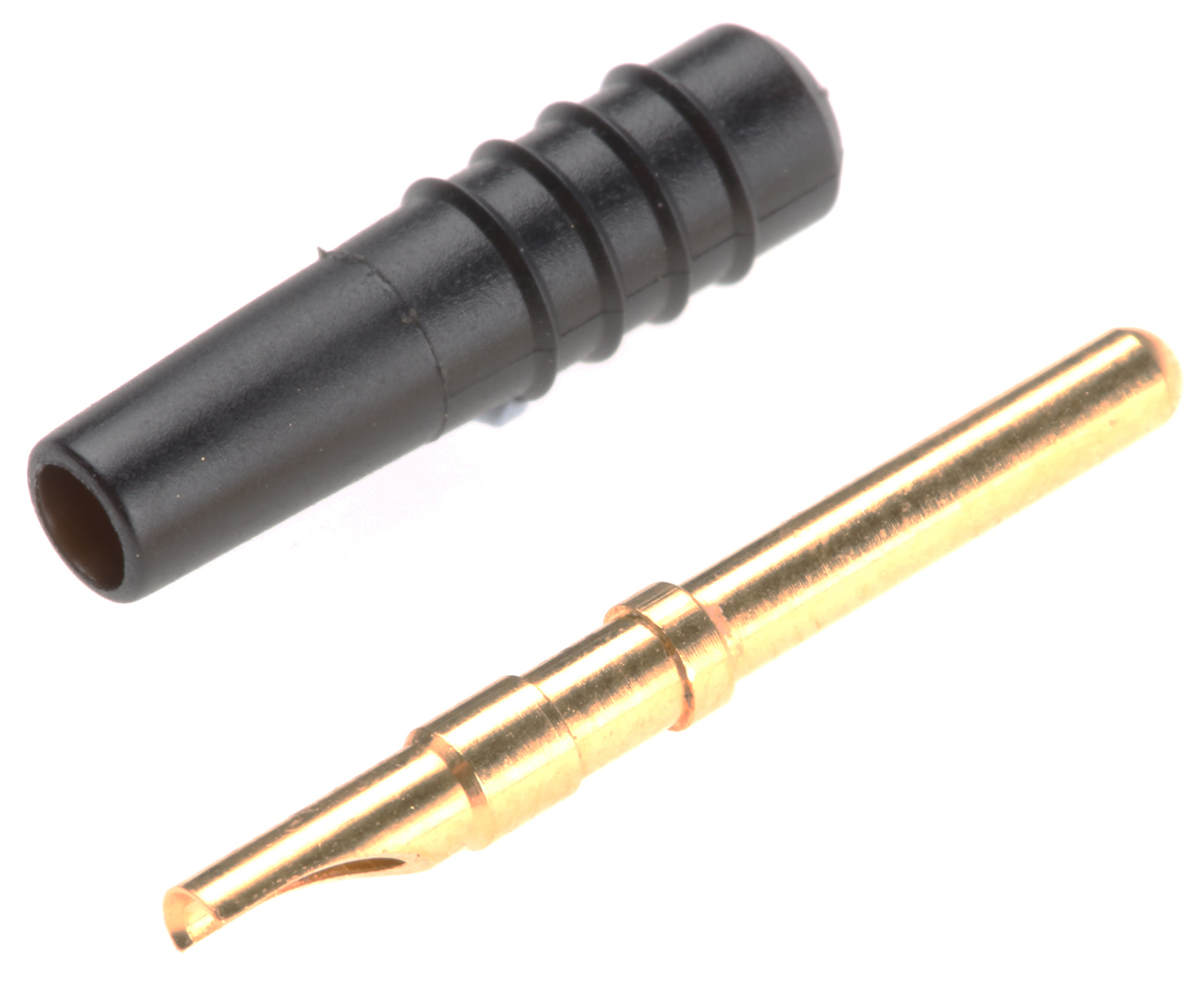 This is Multi Contact Black Plug Banana Plug - Solder 30 V ac 60 V dc manufactured by Staubli. The manufacturer part number is 22.2609-21. The product has a current rating of 10a. Moreover, the product has a nominal 30 v, 60v dc voltage rating. In addition, male is the available "Gender" of the product. It has a decent black colour. Its accurate length is 27mm. The high-quality gold is used as contact plating material. It allows solder termination method. It comes in test connector configuration. The connector has 2mm size.