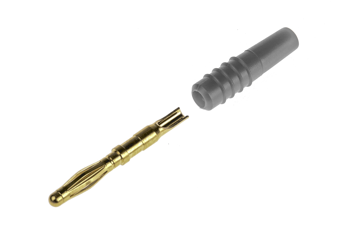 This is Multi Contact Grey Plug Banana Plug - Solder 30 V ac 60 V dc manufactured by Staubli. The manufacturer part number is 22.2618-28. The product has a current rating of 10a. Moreover, the product has a nominal 30 v, 60v dc voltage rating. In addition, male is the available "Gender" of the product. It has a decent grey colour. Its accurate length is 27mm. It contains a spring contact . The high-quality gold is used as contact plating material. It allows solder termination method. It comes in banana plug configuration. The connector has 2mm size.