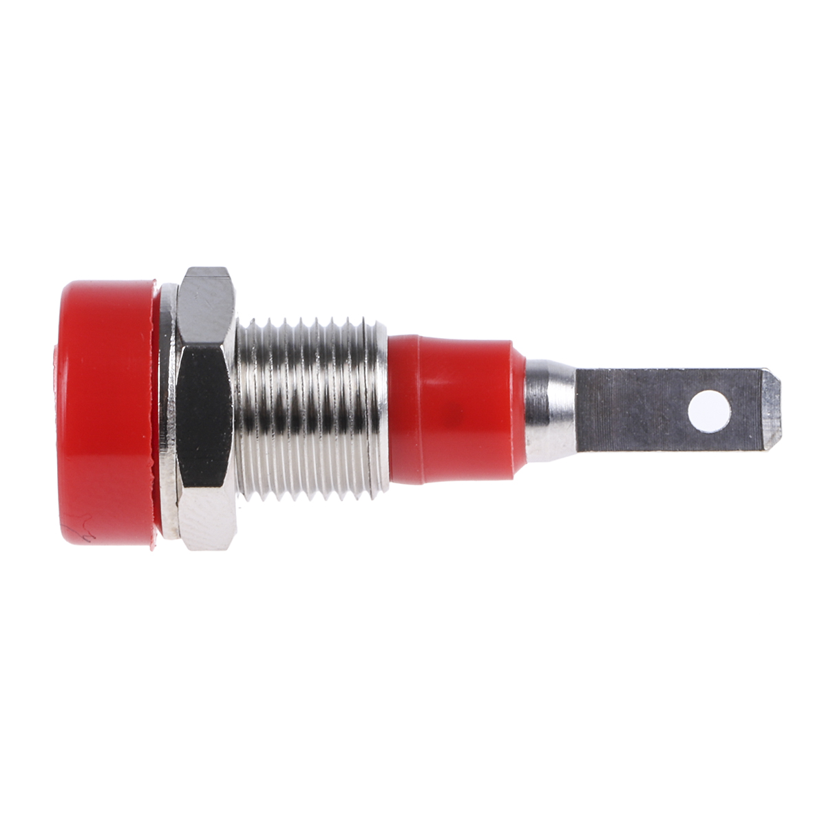 Multi-Contact LB-12R 2mm Rigid Panel Mount Socket Multi-Contact LB-12R series 2 mm panel mount socket connectors feature a rigid socket machined from brass, M6x0.5 thread for mounting into pre-drilled holes and has a flat 2.8 x 0.8 mm tab. The LB-12R range of rigid panel mount sockets is for use with the SLS205-L range of multilam plug connectors, this combination offers secure and reliable repeat connectivity for your desired application. Supplied complete with washer and locknut, overall diameter of the plug entry point is 8.5mm diameter. Insulated 2mm rigid socket Optalloy® finish Flat connecting tab (2.8mm x 0.8mm) Supplied with fixings Can be screwed into pre-drilled panels Rated up to 30Vac / 60Vdc at 10A Compatible with SLS205-L 2mm plug Note Suitable for use with the SLS205-L range of multilam test lead plugs see 763-2897 and range. 2mm Multi-Contact Test Lead Plug and Socket Connectors Multi-Contact 2 mm rigid and multilam plug connectors and socket connectors range is suitable for many applications that call for a self assembled 2 mm diameter plug test lead or a panel mount receptacle socket connector. The test plug insulator is assembled over an associated cable prior to soldering into the solder bucket, it is then a press fit over the 2 mm plug tang to complete.