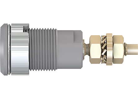 Multi-Contact Panel Mount 4mm Socket From Multi-Contact, this socket can be screw-mounted in pre-drilled panels and accepts spring-loaded 4mm plugs. This 4mm socket has a rigid insulated sleeve and is made from machined brass. 4mm Sockets Plugs, sockets, adaptors, probes and leads with shrouded centre contacts for use where a higher degree of safety in interconnection is required.