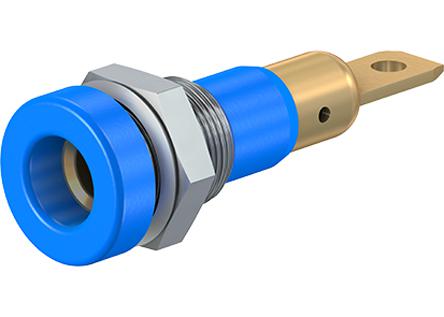 Multi-Contact Panel Mount 4mm Socket, with Tab From Multi-Contact, this insulated socket can be screw-mounted in pre-drilled panels. This 4mm rigid socket is made from machined brass and has solder tag terminals. 4mm Sockets Plugs, sockets, adaptors, probes and leads with shrouded centre contacts for use where a higher degree of safety in interconnection is required.