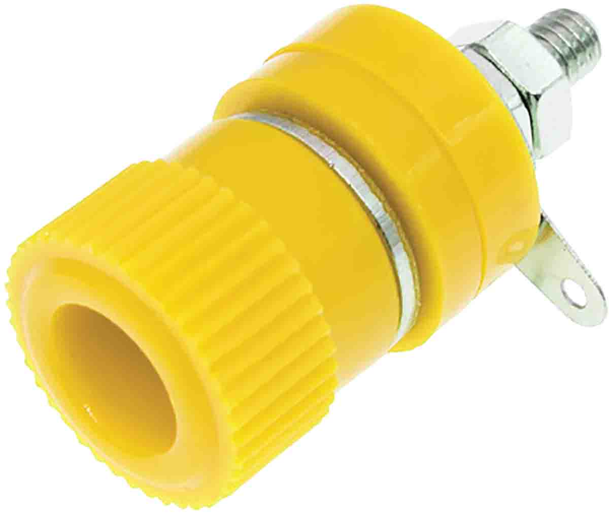 This is Yellow Female Banana Socket - Solder Termination 30V 24A manufactured by RS PRO. The manufacturer part number is 208-0291. The product has a current rating of 24a. Moreover, the product has a nominal 30v voltage rating. In addition, female is the available "Gender" of the product. It has a decent yellow colour. The high-quality nickel is used as contact plating material. It allows solder termination method. It has a robust abs insulation material. It comes in banana socket configuration. The connector has 4 mm size. The product is made from sturdy brass materials.