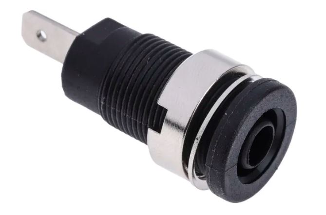 This is Black Female Banana Socket - Tab Termination 1000V 24A manufactured by RS PRO. The manufacturer part number is 224-7423. The product has a current rating of 24a. The high-quality nickel, tin is used as contact plating material. Moreover, the product has a nominal 1000v voltage rating. In addition, female is the available "Gender" of the product. It has a decent black colour. Its accurate length is 24.5mm. The connector has 4 mm size. It allows tab termination method. It comes in banana socket configuration.