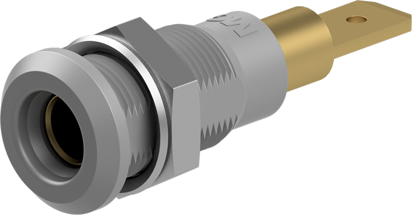 The Staubli LB4H-IF/A banana test conn socket 60VDC black gold plated it is insulated, rigid. The socket can be screw-mounted in predrilled panels. Flat connecting tab 4.8 mm x 0.8 mm. Diameter of plug system is 4 mm Thread M8x0.5 Component part is BI-LB4x-IF/A