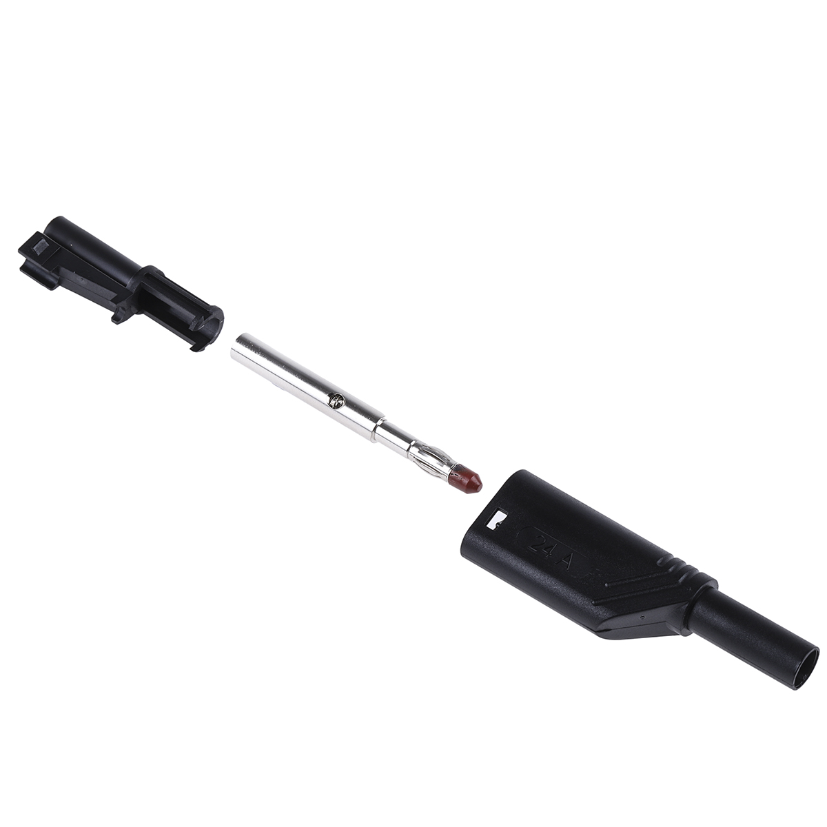 This is Black Male Banana Plug 4 mm Connector Screw Termination 24A 1000V Nickel Plating manufactured by Hirschmann Test & Measurement. The manufacturer part number is 934099100-. The product has a current rating of 24a. Moreover, the product has a nominal 1000v voltage rating. In addition, male is the available "Gender" of the product. It has a decent black colour. Its accurate length is 58.3mm. It contains a spring contact . The high-quality nickel is used as contact plating material. It allows screw termination method. It has a robust polyamide insulation material. It comes in banana plug configuration. The connector has 4 mm size. The product is made from sturdy brass materials.