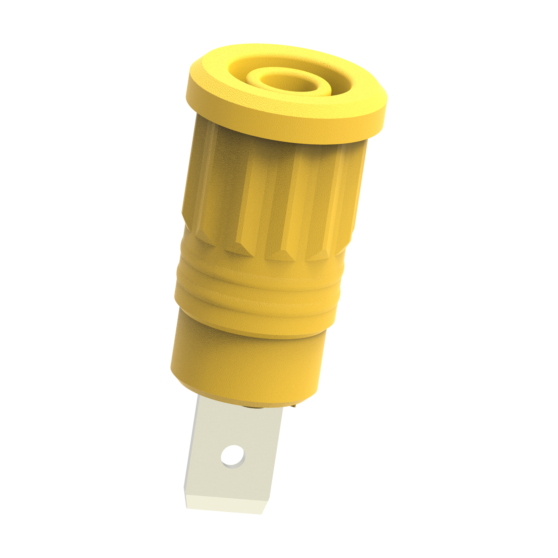 This is Yellow Female Banana Socket 4 mm Connector Press Fit Termination 36A 1kV Nickel Plating manufactured by Electro PJP. The manufacturer part number is 3286-J. The product has a current rating of 36a. Moreover, the product has a nominal 1kv voltage rating. In addition, female is the available "Gender" of the product. It has a decent yellow colour. The high-quality nickel is used as contact plating material. It allows press fit termination method. The connector has 4 mm size.