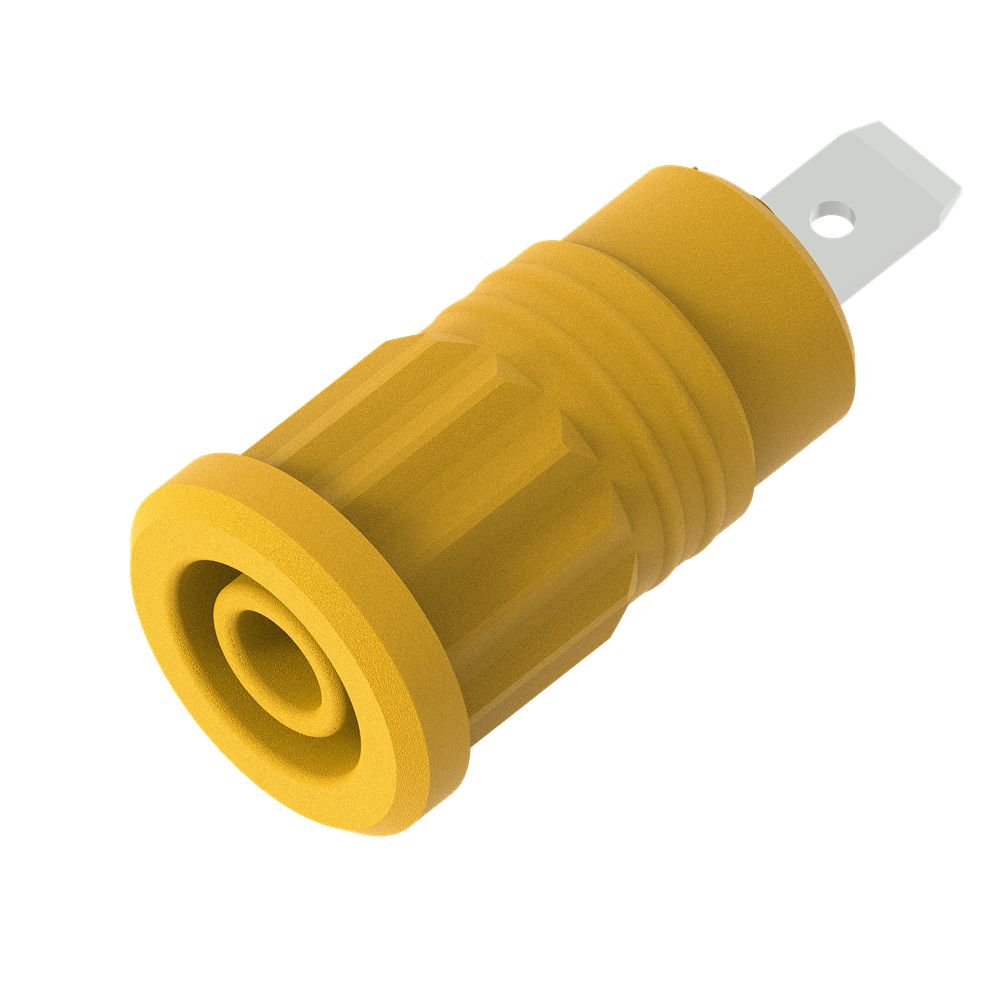 This is Yellow Female Banana Socket 4 mm Connector Press Fit Termination 36A 1kV Nickel Plating manufactured by Electro PJP. The manufacturer part number is 3294-J. The product has a current rating of 36a. Moreover, the product has a nominal 1kv voltage rating. In addition, female is the available "Gender" of the product. It has a decent yellow colour. The high-quality nickel is used as contact plating material. It allows press fit termination method. The connector has 4 mm size.