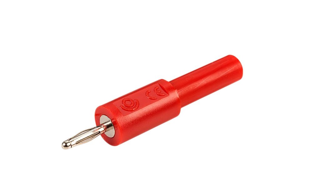 This is 2 mm M to 4 mm F adapter Red manufactured by RND. The manufacturer part number is RND 350-00050.
