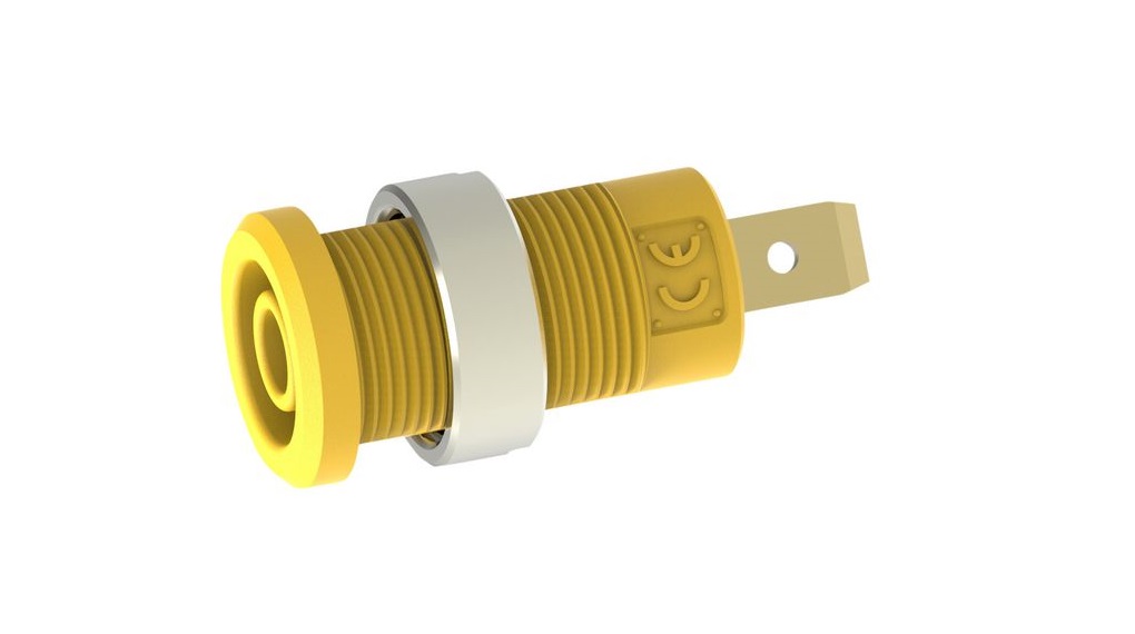 This is 4 mm panel socket 4.8x0.8mm yellow manufactured by RND. The manufacturer part number is RND 350-00061.