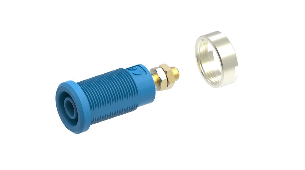 This is 4 mm panel socket M4 screw blue manufactured by RND. The manufacturer part number is RND 350-00067.