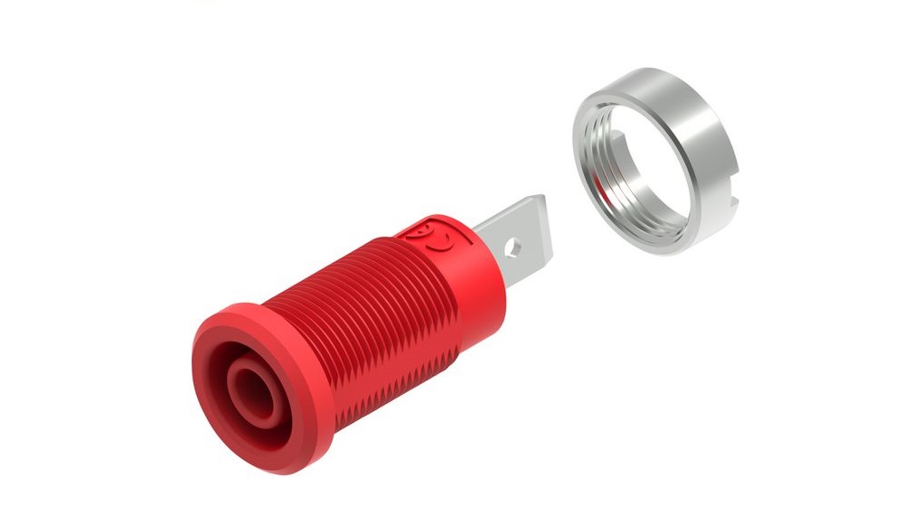 This is 4 mm banana socket 6.3x0.8mm red manufactured by RND. The manufacturer part number is RND 350-00130.
