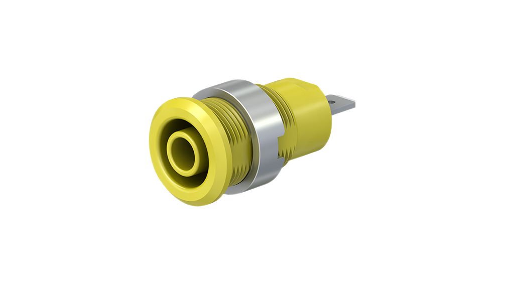 This is Yellow Socket Banana Socket 4 mm Connector Screw Termination 24A 1kV Nickel Plating manufactured by Staubli. The manufacturer part number is 49.7044-24. The product has a current rating of 24a. Moreover, the product has a nominal 1kv voltage rating. In addition, socket is the available "Gender" of the product. It has a decent yellow colour. The high-quality nickel is used as contact plating material. It allows screw termination method. The connector has 4 mm size.