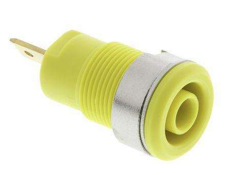 This is Yellow 4mm Socket Gold Plated 1kV 24A manufactured by HCK. The manufacturer part number is 23.3000-24. The product has a current rating of 24a. Moreover, the product has a nominal 1kv voltage rating. In addition, female is the available "Gender" of the product. It has a decent yellow colour. Its accurate length is 31.5mm. The high-quality gold is used as contact plating material. It allows tab termination method. The product is made from sturdy brass materials.