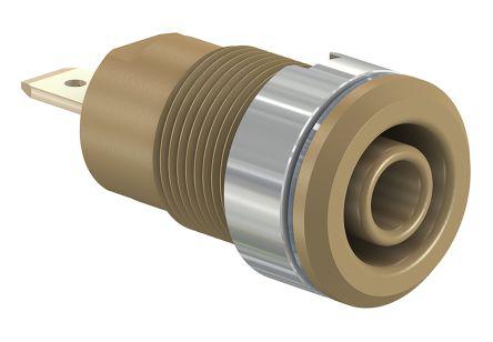 The Staubli 23.3000-27 is a high-performance 4mm female banana socket designed for panel mounting. Engineered to handle up to 24A of current and 1kV of voltage, this connector ensures secure and reliable connections in demanding environments. Its gold-plated brass contacts and robust insulation make it ideal for laboratory, industrial, and test equipment applications. The socket features a quick-connect tab termination, simplifying installation and maintenance. With a compact length of 31.5mm and a mounting hole diameter of 12.2mm, it fits seamlessly into various panel configurations.
