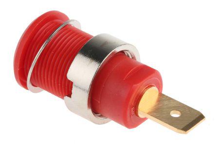 This is Red 4mm Socket Gold Plated 1kV 32A manufactured by HCK. The manufacturer part number is 23.3060-22. The product has a current rating of 32a. Moreover, the product has a nominal 1kv voltage rating. In addition, female is the available "Gender" of the product. It has a decent red colour. Its accurate length is 33mm. The high-quality gold is used as contact plating material. It allows tab termination method. The product is made from sturdy brass materials.
