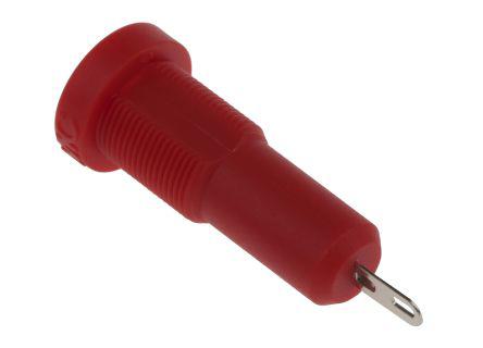4 mm laboratory range, 25 A panel receptacle Dimensions: L. 30 mm Insulated 4 mm panel mounting socket with tag terminal and plastic thread Attachment using hexagon nut supplied Max. Continuous current: 25 A Mounting hole size: 8 mm Contact material: Nickel Plated Brass Temperature range: –10 °C → +80 °C
