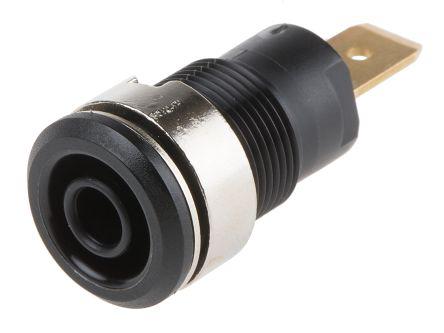 This is Black 4mm Socket Gold Plated 1kV 32A manufactured by HCK. The manufacturer part number is 23.3060-21. The product has a current rating of 32a. Moreover, the product has a nominal 1kv voltage rating. In addition, female is the available "Gender" of the product. It has a decent black colour. Its accurate length is 33mm. The high-quality gold is used as contact plating material. It allows tab termination method. The product is made from sturdy brass materials.