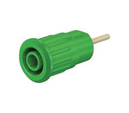 Staubli SEB4-R Series 4 mm Press-in Sockets SEB4-R series 4 mm press-in panel mount sockets with a rigid insulation sleeve for pressing into predrilled panels. These sockets have a 1000 V, CAT III / 24 A rating and are terminated with a 1.9 mm diameter round connecting pin. The sockets are made from machined brass and the insulation sleeves are colour coded for ease of identification. These SEB4-R series 4 mm panel mount press-in sockets are designed to accept spring loaded 4 mm plugs which also have a rigid insulation sleeve. Features and Benefits Press-in fitting 1000 V, CAT III / 24 A rating Rigid, colour coded insulation 1.9 mm diameter pin terminal