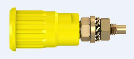 This is Yellow 4mm Socket Gold Plated 1kV 24A manufactured by Multi Contact. The manufacturer part number is 23.3140-24. The product has a current rating of 24a. Moreover, the product has a nominal 1kv voltage rating. In addition, female is the available "Gender" of the product. It has a decent yellow colour. Its accurate length is 38.5mm. It contains a spring contact . The high-quality gold is used as contact plating material. It allows press fit termination method. It has a robust polyamide insulation material. The product is made from sturdy brass materials.