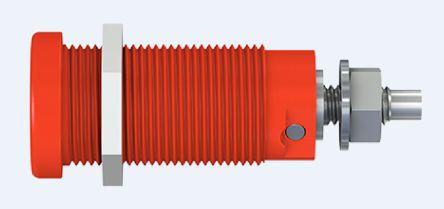 Staubli XEG-1R Series 4 mm Panel Sockets XEG-1R series 4 mm panel sockets with a rigid insulation sleeve and M12 x 0.75 thread for screwing into predrilled panels. These sockets have a 1000 V, CAT IV / 20 A rating and are made from machined brass. The sockets are terminated with an M4 threaded bolt and are designed to mate with spring loaded 4 mm diameter plugs which also have a rigid insulation sleeve. The insulation sleeves of these XEG-1R series 4 mm sockets are colour coded for ease of identification. Features and Benefits 1000 V, CAT IV / 20 A rating M12 x 0.75 thread Rigid, colour coded insulation M4 connection bolt