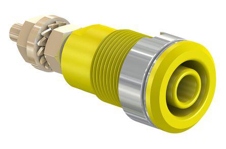 This is Yellow 4mm Socket Gold Plated 1kV 32A manufactured by HCK. The manufacturer part number is 23.3020-24. The product has a current rating of 32a. Moreover, the product has a nominal 1kv voltage rating. In addition, female is the available "Gender" of the product. It has a decent yellow colour. Its accurate length is 38.5mm. The high-quality gold is used as contact plating material. It allows solder termination method. The product is made from sturdy brass materials.