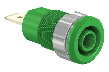This is Green 4mm Socket Gold Plated 1kV 32A manufactured by HCK. The manufacturer part number is 23.3060-25. The product has a current rating of 32a. Moreover, the product has a nominal 1kv voltage rating. In addition, female is the available "Gender" of the product. It has a decent green colour. Its accurate length is 33mm. The high-quality gold is used as contact plating material. It allows tab termination method. The product is made from sturdy brass materials.