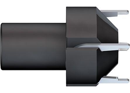 4mm PCB Mount In Line Socket From Multi Contact, this 4mm in line socket is for direct soldering onto printed circuit boards.This fixed 4mm socket has rigid insulation and accepts spring loaded 4mm plugs with rigid insulating sleeves. The socket is made from machined brass and is touch protected and insulated according to IEC/EN 61010-1. Features and Benefits: 1000 V for CAT III 600 V for CAT IV Rated Current of 24 A