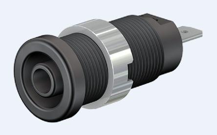 Staubli XEF-1RR Series 4 mm Panel Sockets XEF-1RR series 4 mm panel sockets with a rigid insulation sleeve and M12 x 0.75 thread for screwing into predrilled panels. These sockets have a 1000 V, CAT IV / 24 A rating and are made from machined brass. The sockets are terminated with a 4.8 x 0.8mm tab terminal and are designed to mate with spring loaded 4 mm diameter plugs which also have a rigid insulation sleeve. The insulation sleeves of these XEF-1RR series 4 mm sockets are colour coded for ease of identification. Features and Benefits 1000 V, CAT IV / 24 A rating M12 x 0.75 thread Rigid, colour coded insulation 4.8 x 0.8mm tab terminal