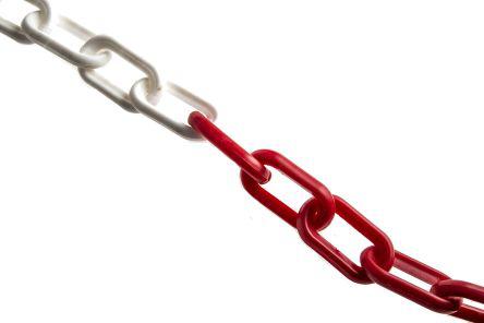 This is 1 Red White Plastic Material Barrier & Stanchion Chain for use with Barrier Post Signage 25m manufactured by RS Pro. The manufacturer part number is CMLRB801RBRS. It has a decent red, white colour. The product is made from highly stable and reliable plastic. It is a type of chain accessory. Its accurate length is 25m. The product is highly suitable for barrier, post, signage. The product is available in 8 (dia.) x 50 x 30mm size. Available in 1 quantity.