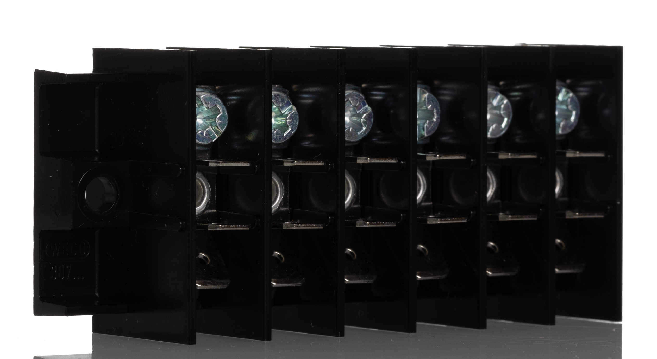 This is Barrier Strip 6 Contact 11 Pitch 6 Row 25A 400 V manufactured by WECO. The manufacturer part number is 307PC06WE42. The product has a current rating of 25a. Moreover, the product has a nominal 400 v voltage rating. It has straight body orientation. It comes in 6 of rows. The high-quality nickel is used as contact plating material. Moreover, the product is 11. The product contains 5 contacts. The product is made from sturdy brass materials.
